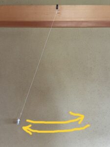 振り子のおもりを一度動かすと,おもりはしばらくの間,行ったり来たりをくりかえします。(写真参照)